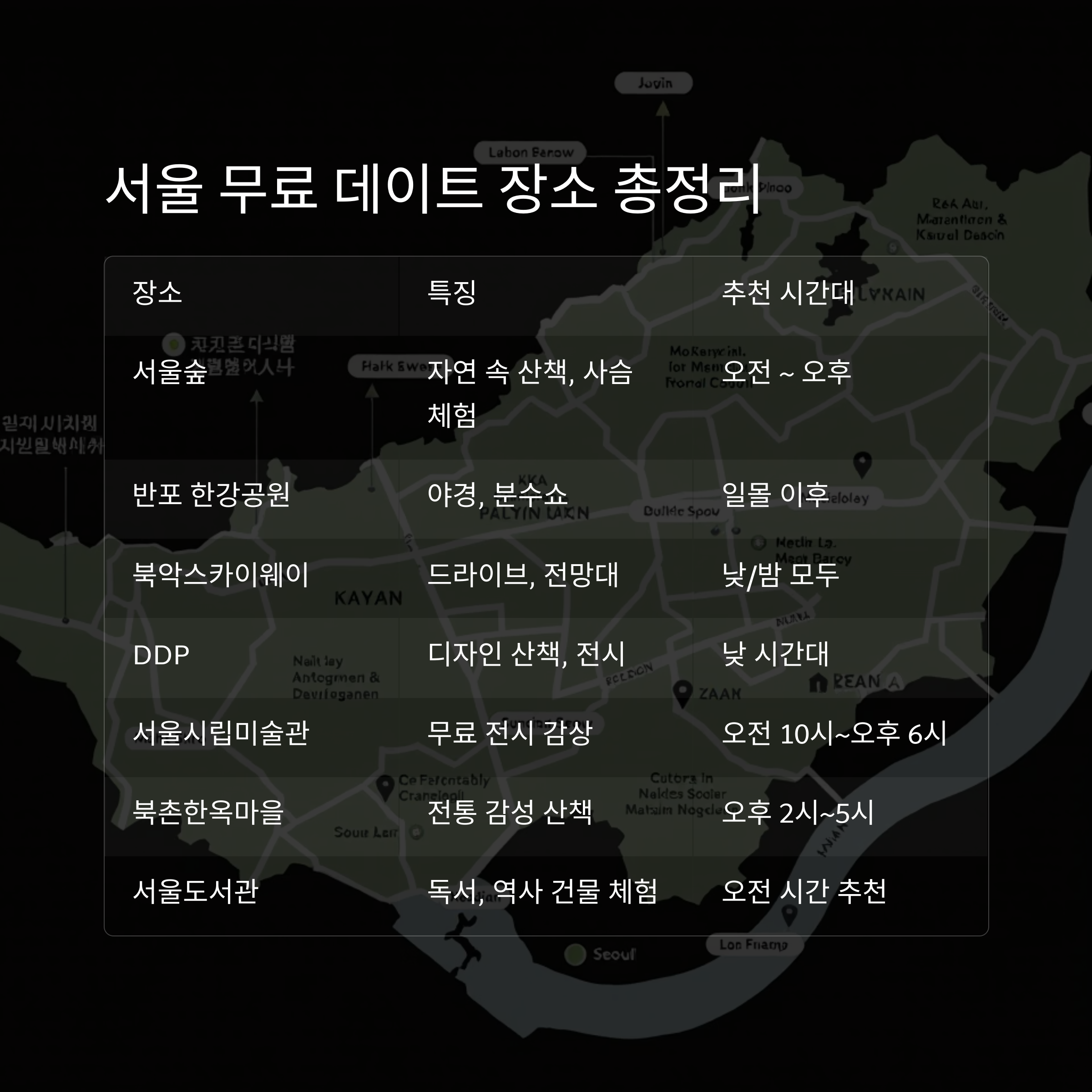 서울의 고퀄리티 무료 데이트 스팟을 알려드립니다.