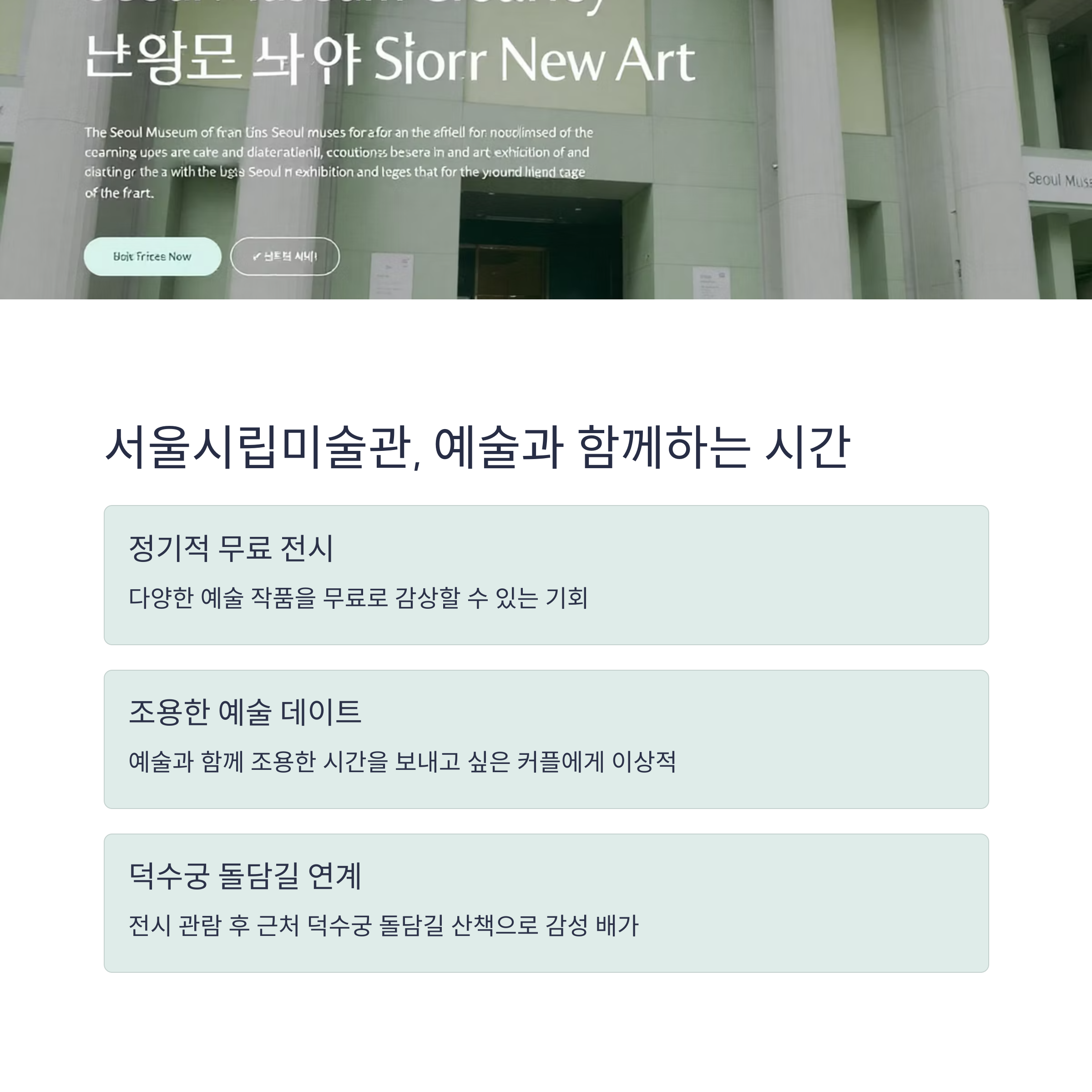 | 서울시립미술관 | 무료 전시 감상 | 오전 10시~오후 6시 |