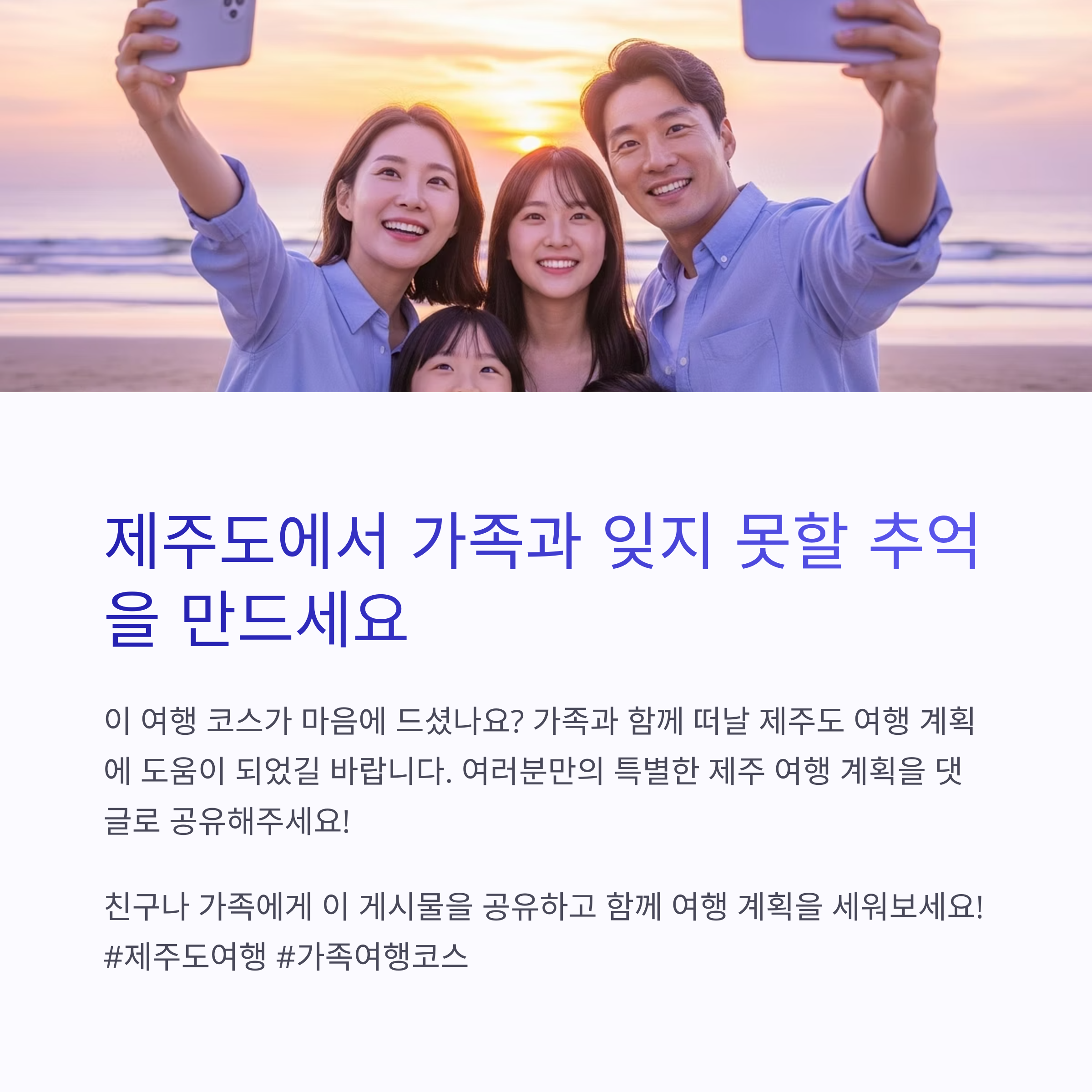 여름 휴가철, 4인가족이 함께 떠나기 좋은 국내 여행지 중 단연 으뜸은 제주도입니다. 자연, 문화, 체험, 맛집까지 고루 갖춘 제주도는 아이부터 어른까지 모두 만족할 수 있는 여행지를 제공합니다. 본문에서는 3박 4일 일정으로 알차게 구성한 가족 맞춤 제주도 여행코스를 소개합니다. 숙소 위치에 따라 동선도 효율적으로 계획했으니 참고해보시길 바랍니다.