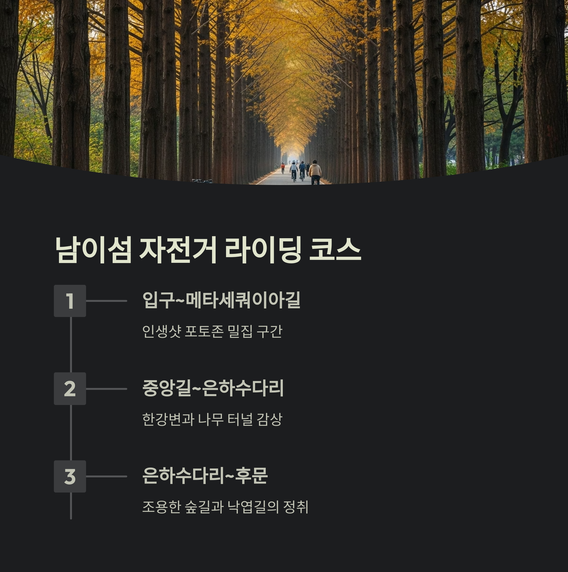 남이섬은 평탄한 코스가 주를 이룹니다.