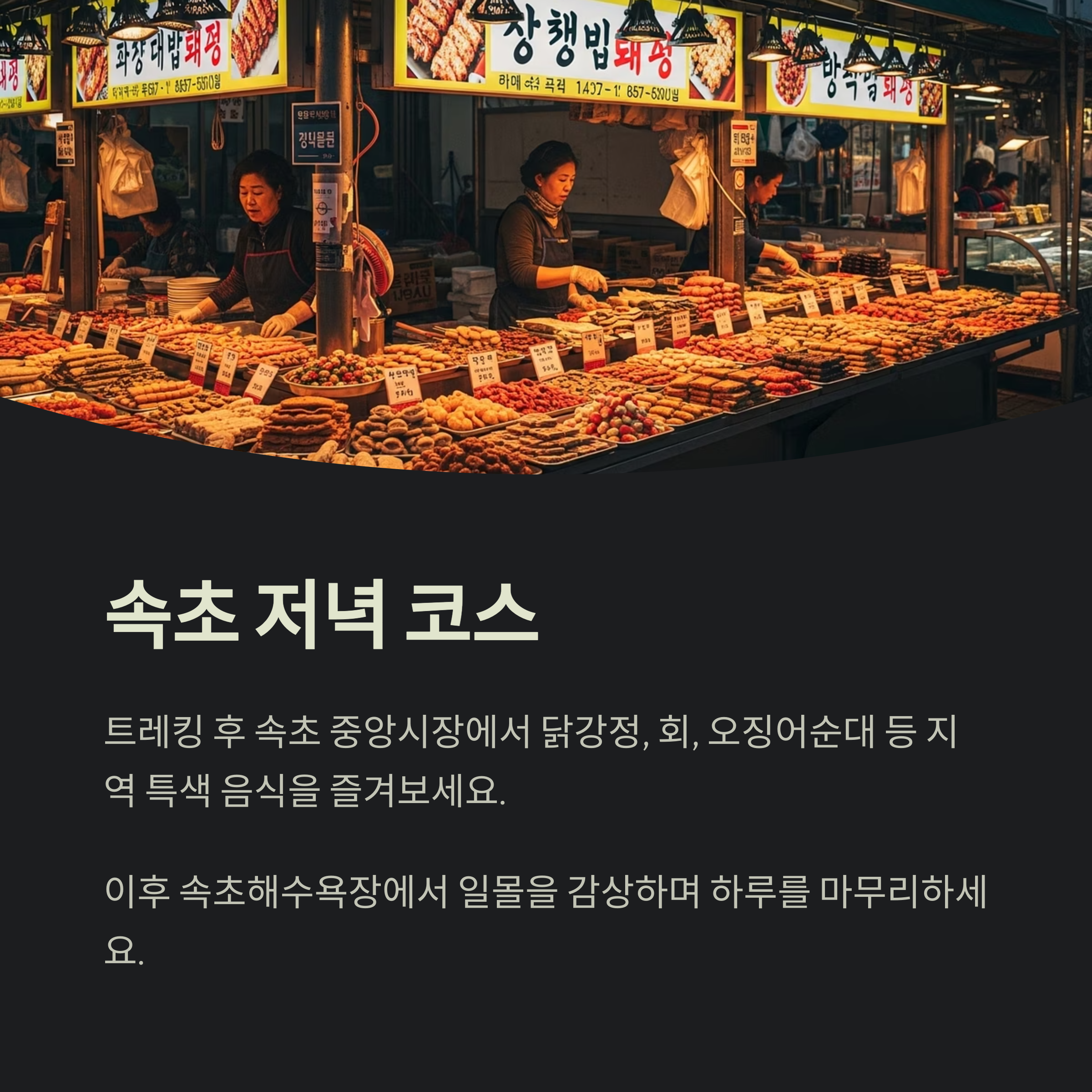 트레킹 후에는 속초 중앙시장 방문을 추천드립니다.