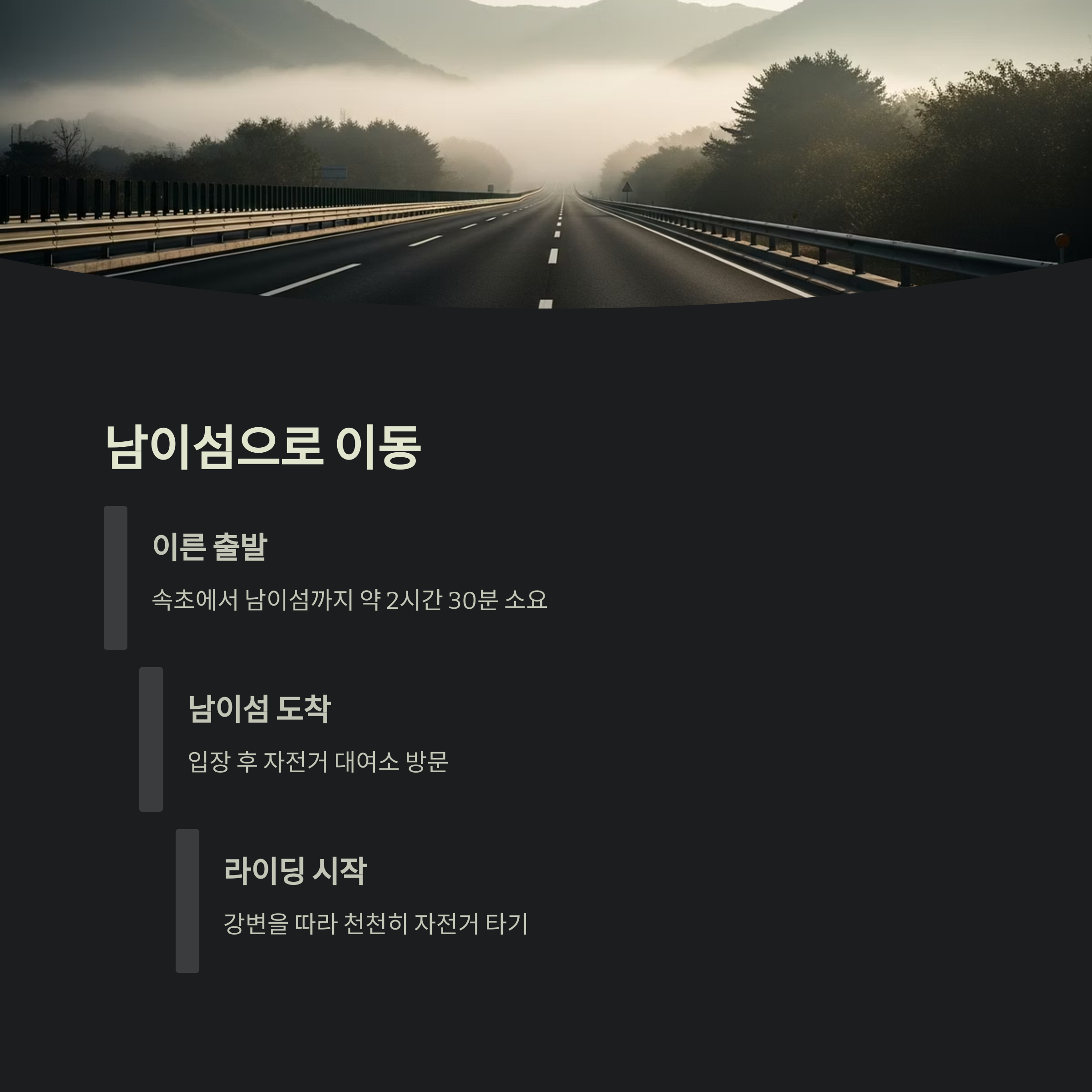 설악산의 시원한 공기와 장쾌한 풍경을 온몸으로 느낀 후, 남이섬의 강변 자전거길을 달리며 마무리하는 1박 2일 여행 코스를 소개합니다. 걷고, 쉬고, 달리는 이 여행은 자연과 함께하는 힐링의 정수를 보여줍니다. 가족, 친구, 연인 누구와 떠나도 좋은 일정이며, 체력 부담도 적어 초보자도 도전하기에 안성맞춤입니다.