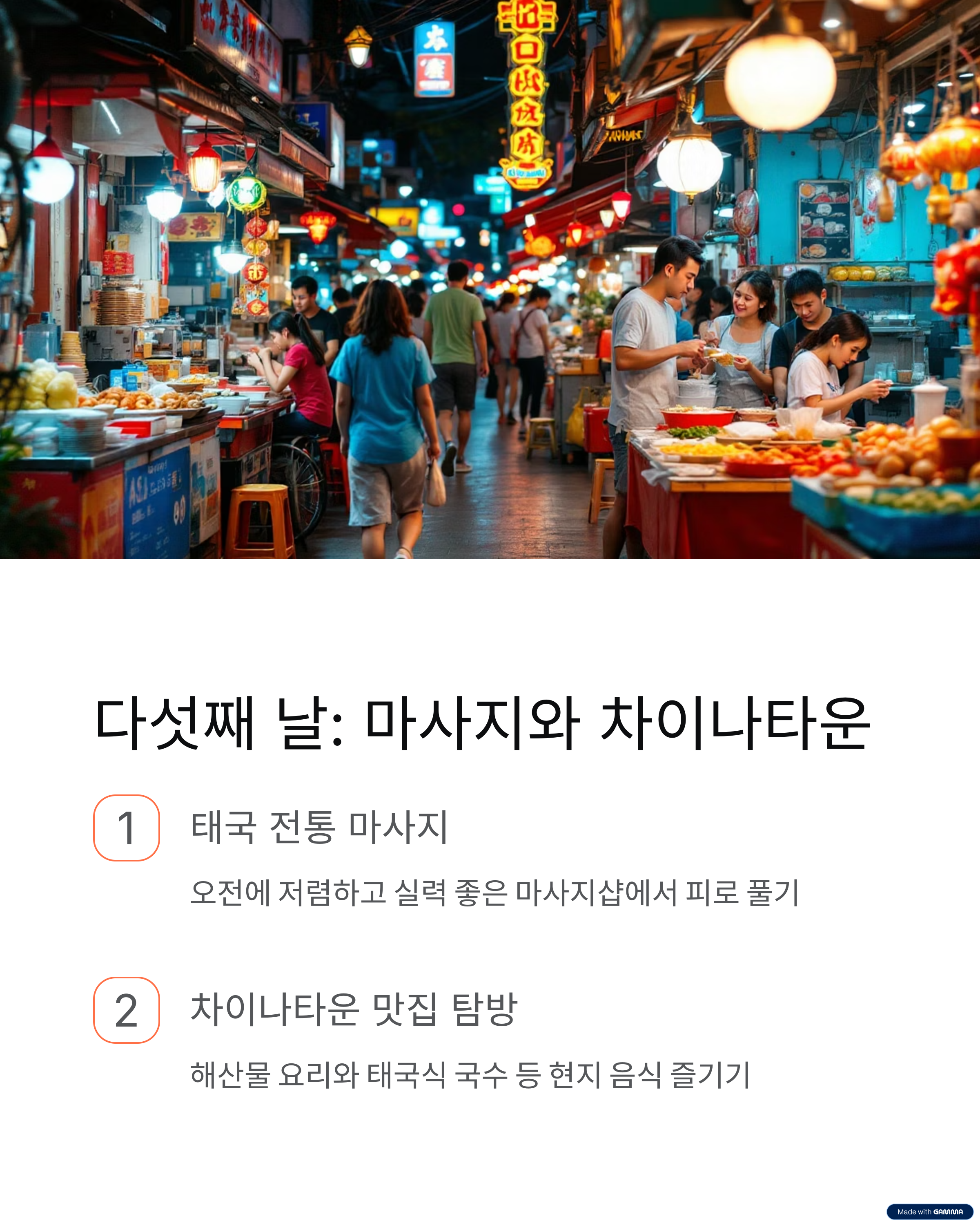 다섯째 날: 마사지와 차이나타운 맛집 탐방