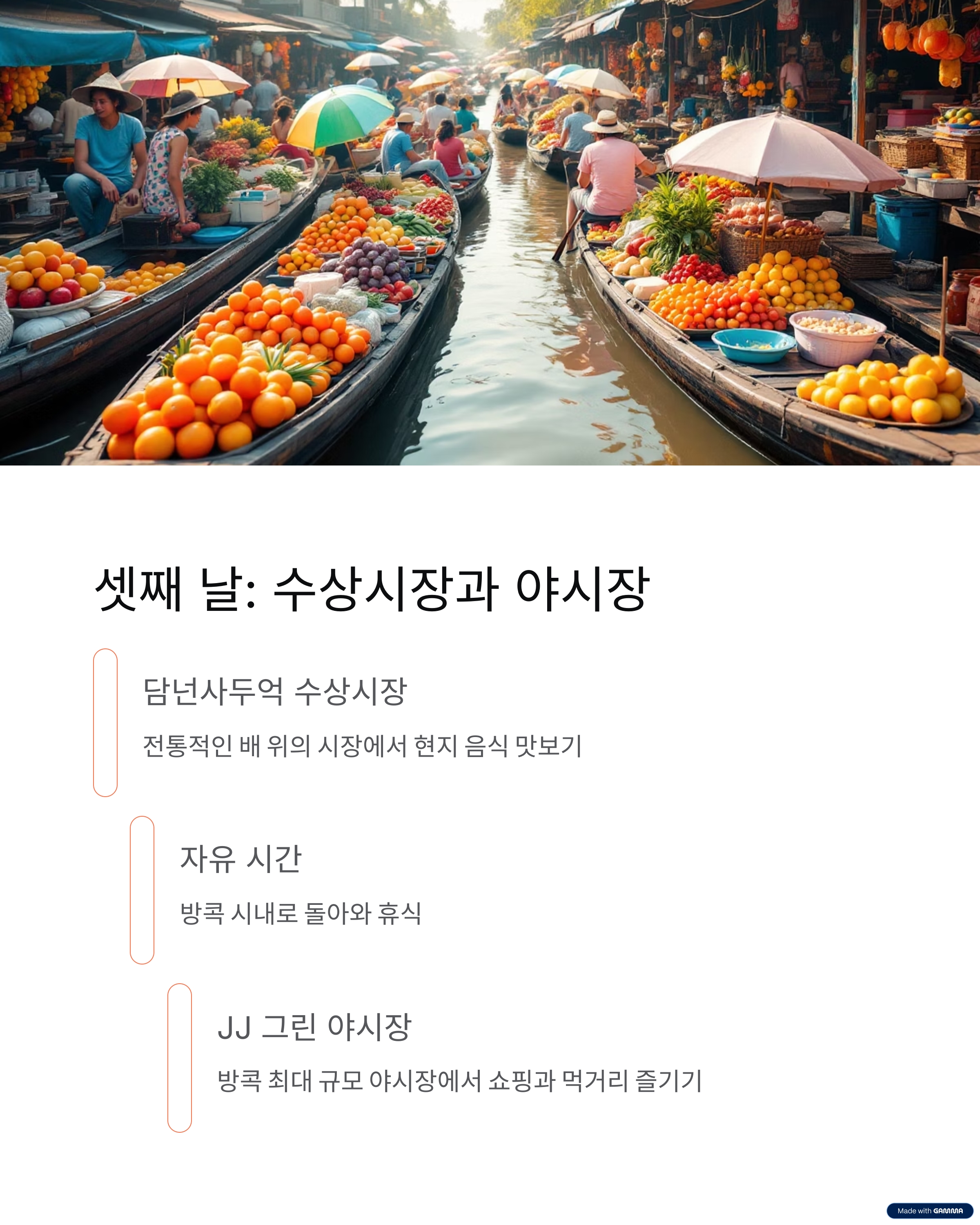 셋째 날: 담넌사두억 수상시장과 야시장 체험