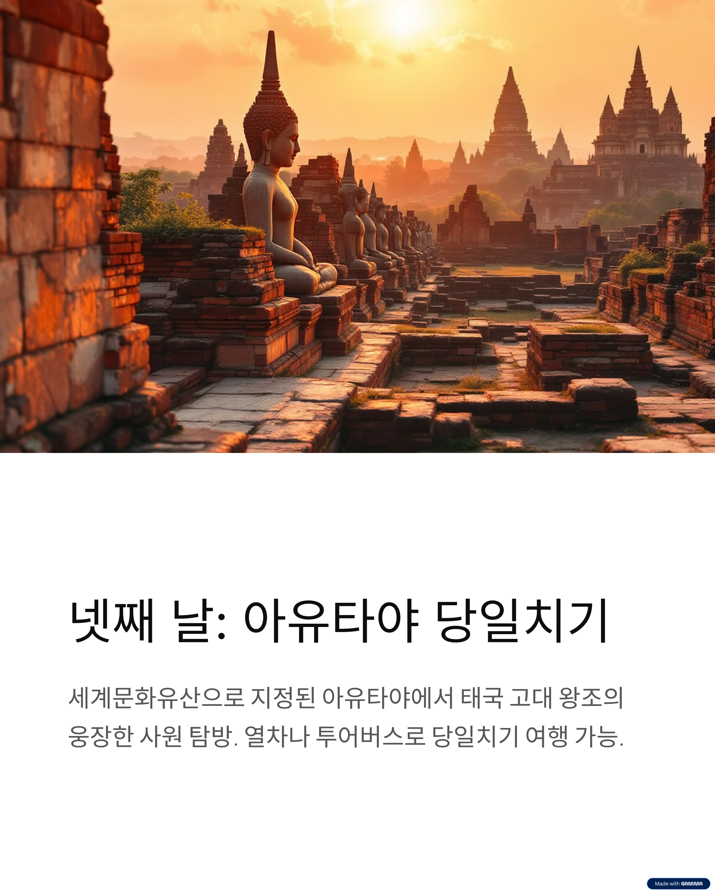 위 일정은 방콕의 핵심 스팟을 효율적으로