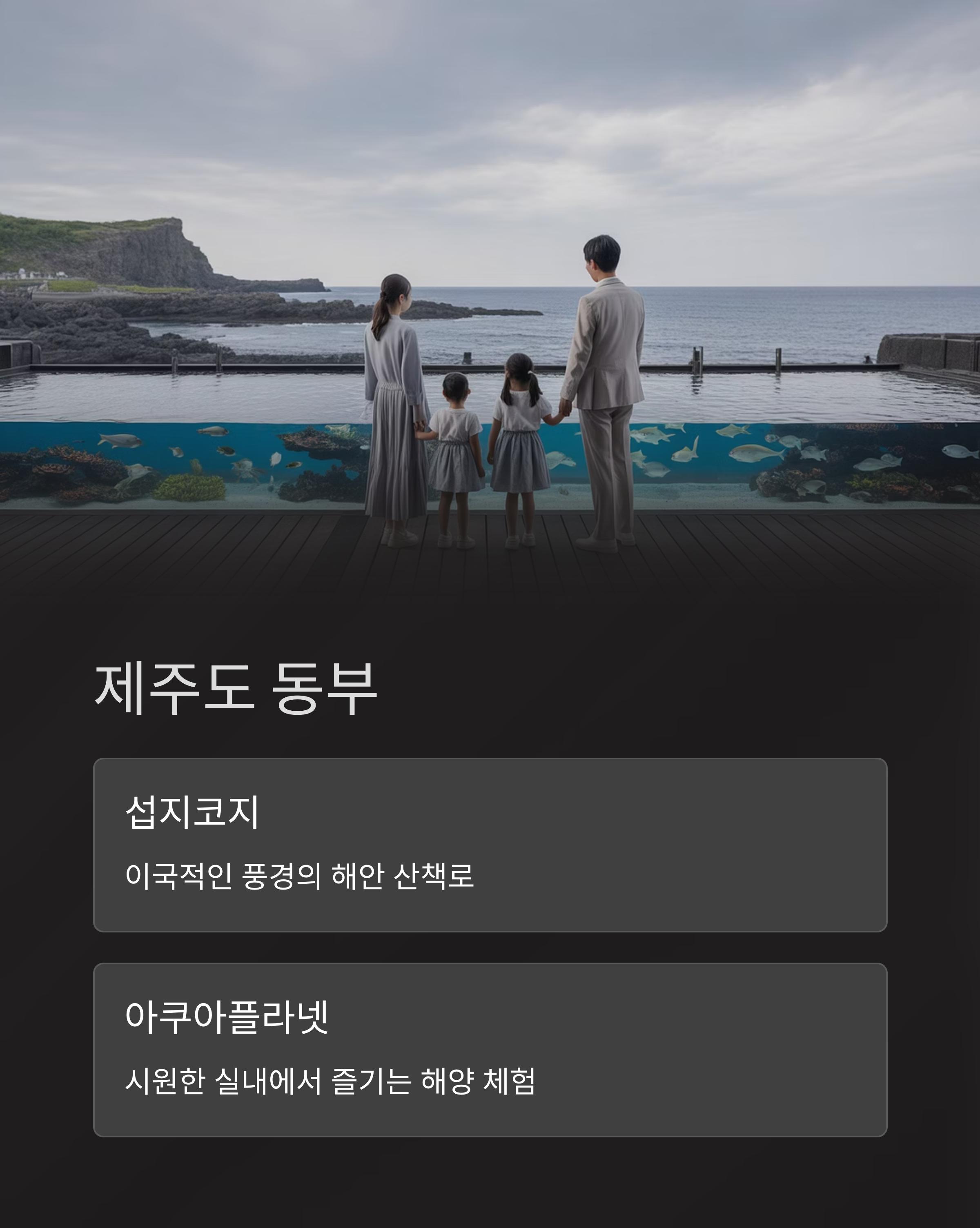 섭지코지의 이국적인 풍경과 아쿠아플라넷의 시원한 해양 체험으로