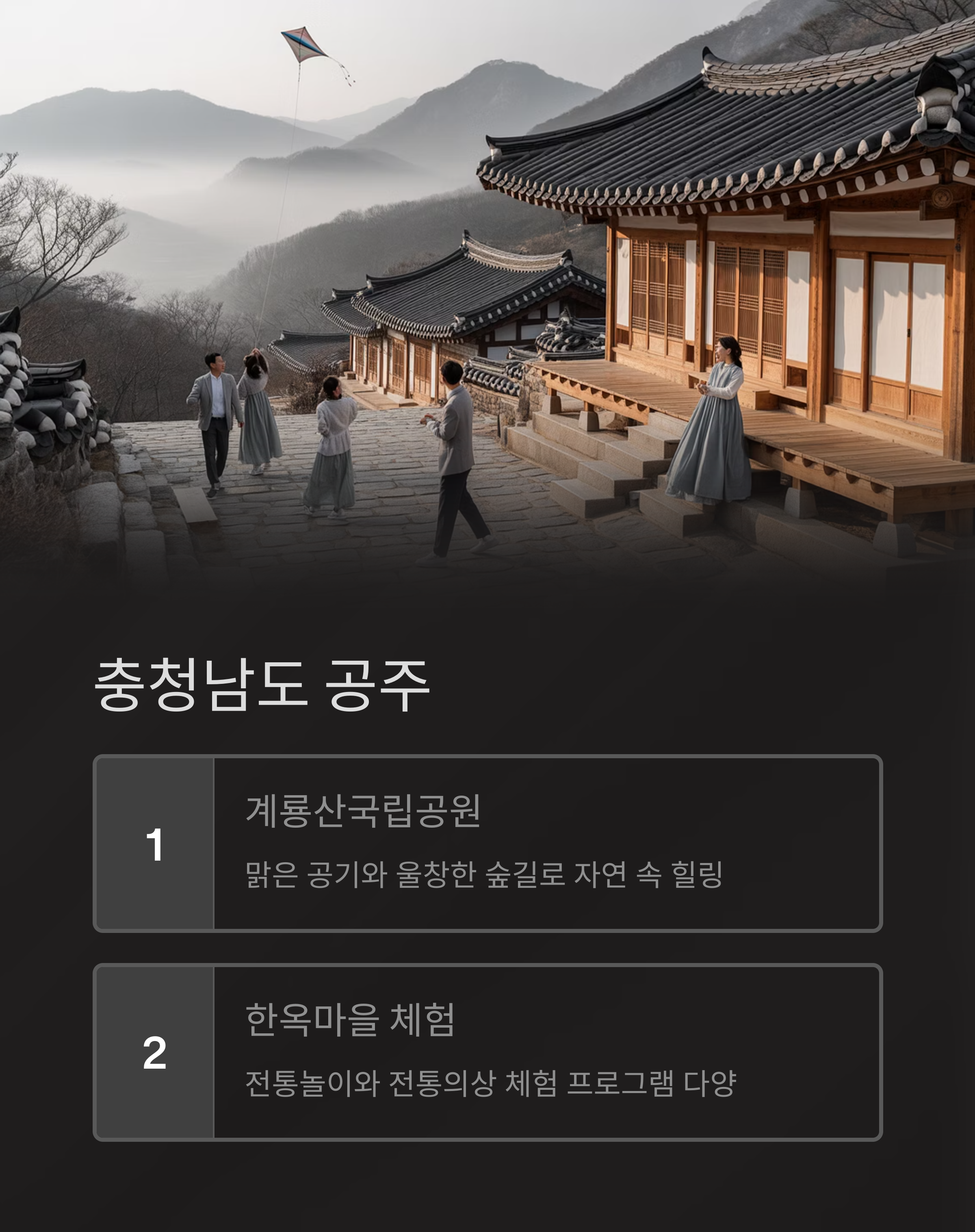 충청남도 공주, 계룡산국립공원과 한옥마을 체험