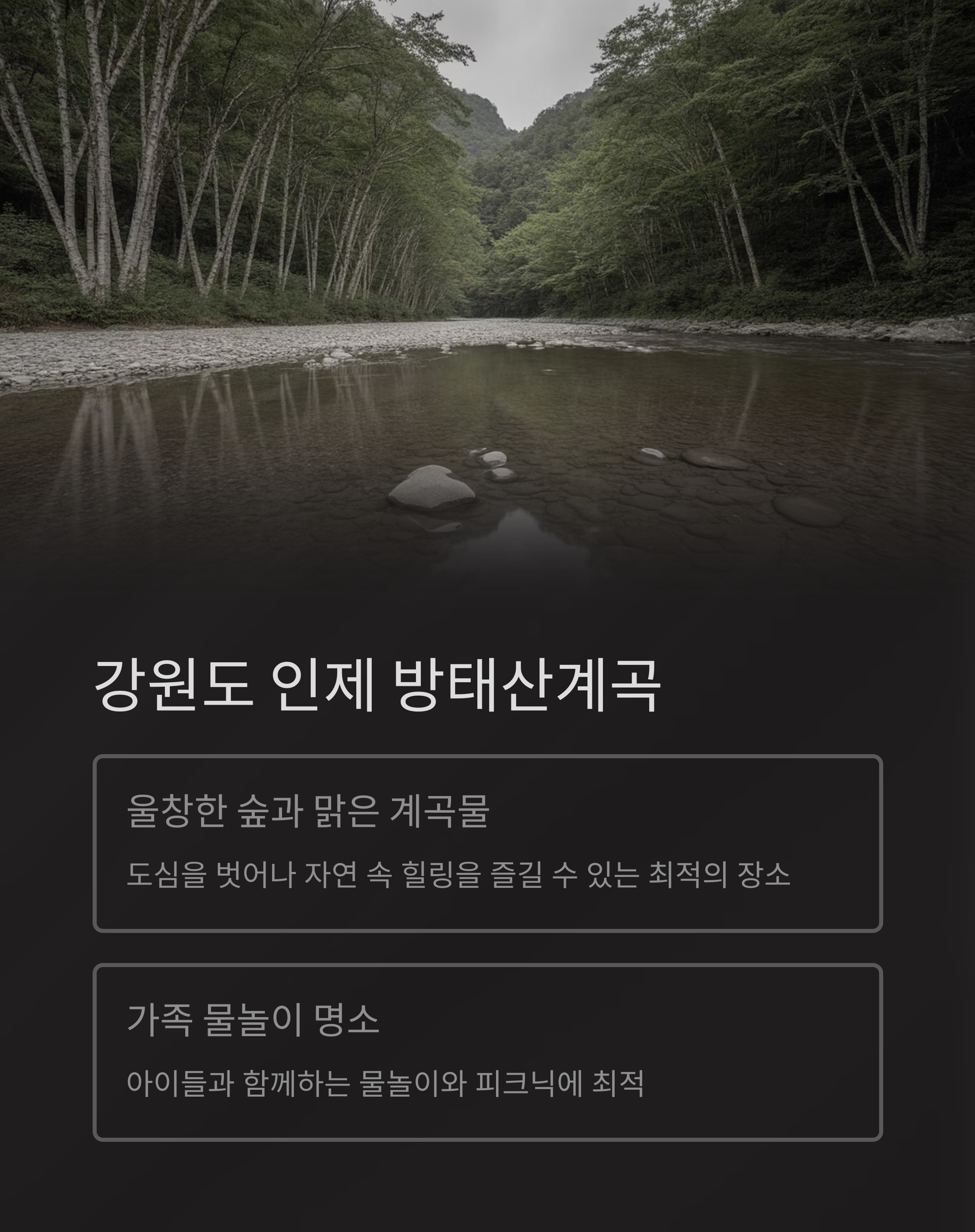 울창한 숲과 맑은 계곡물이 흐르는 인제 방태산계곡은