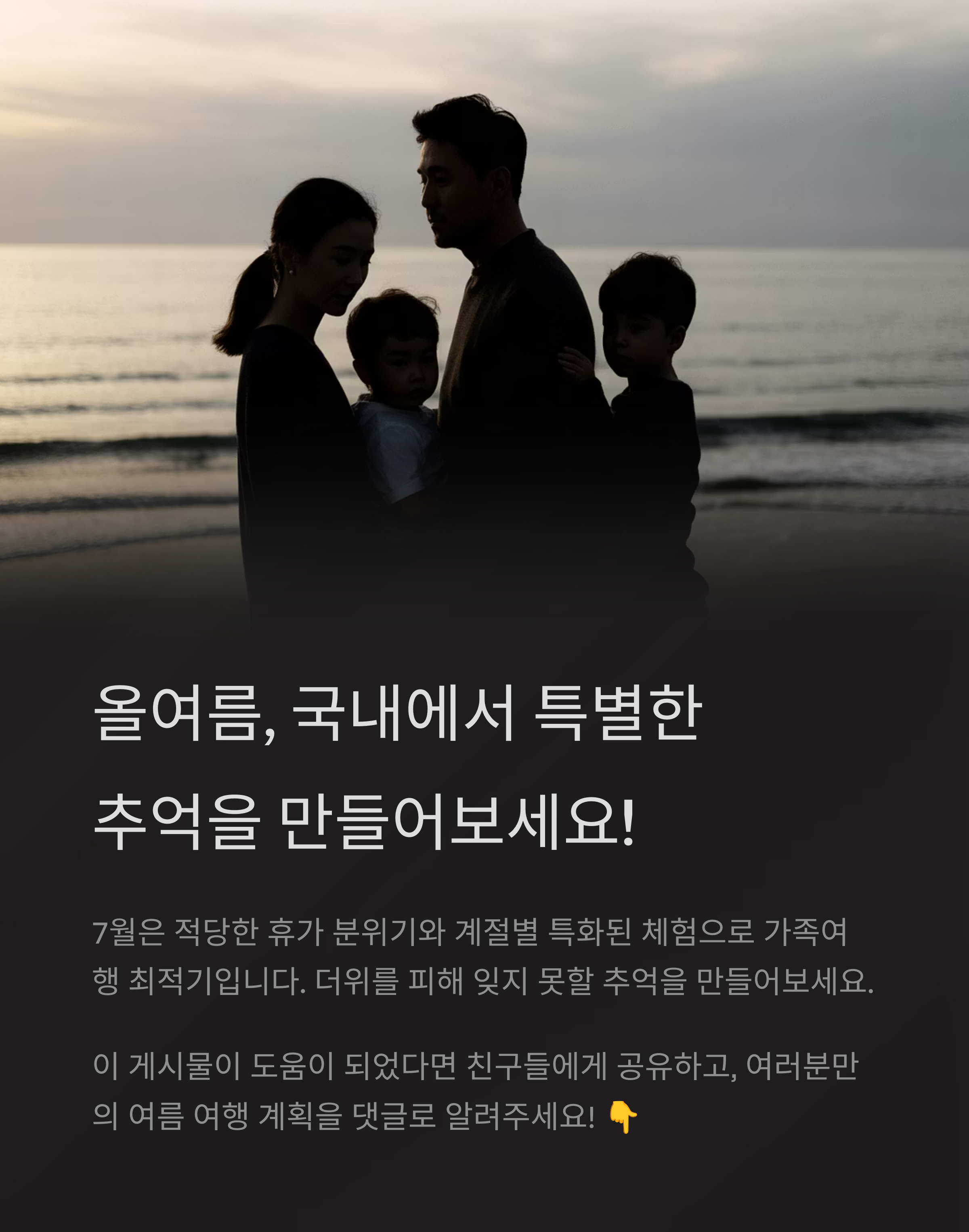 올여름은 국내에서도 충분히 즐겁고 알찬 가족 여행이 가능합니다.