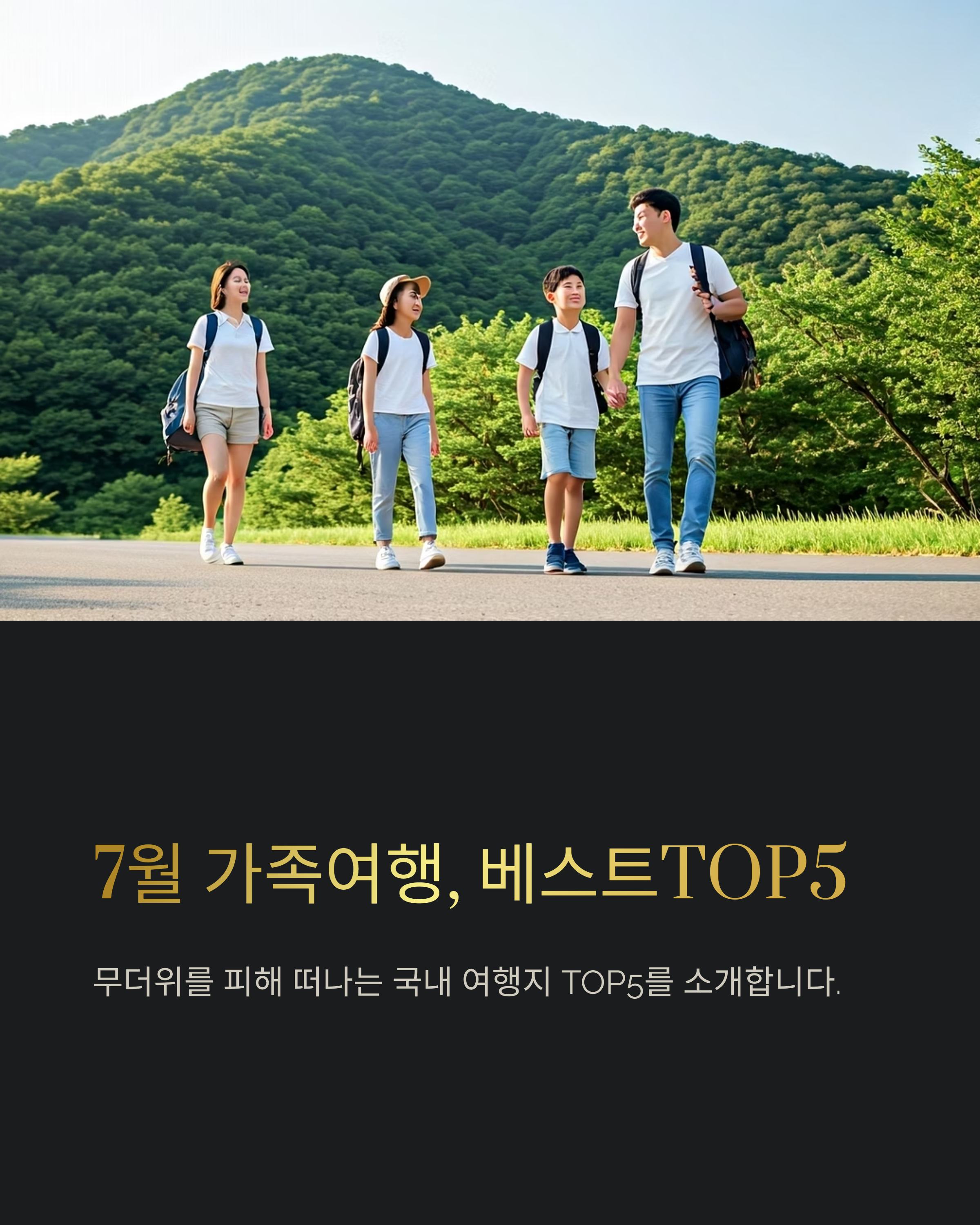 7월은 본격적인 여름방학과 휴가 시즌의 시작으로, 가족 단위 여행객들이 가장 많이 움직이는 시기입니다. 더운 날씨를 피하면서도 아이들과 함께 특별한 추억을 만들 수 있는 국내 여행지를 찾는다면, 지금 소개하는 다섯 곳을 주목해 보세요. 자연 속 힐링부터 시원한 계곡, 문화 체험까지 가족 모두 만족할 만한 여름 여행 코스를 소개해드립니다.