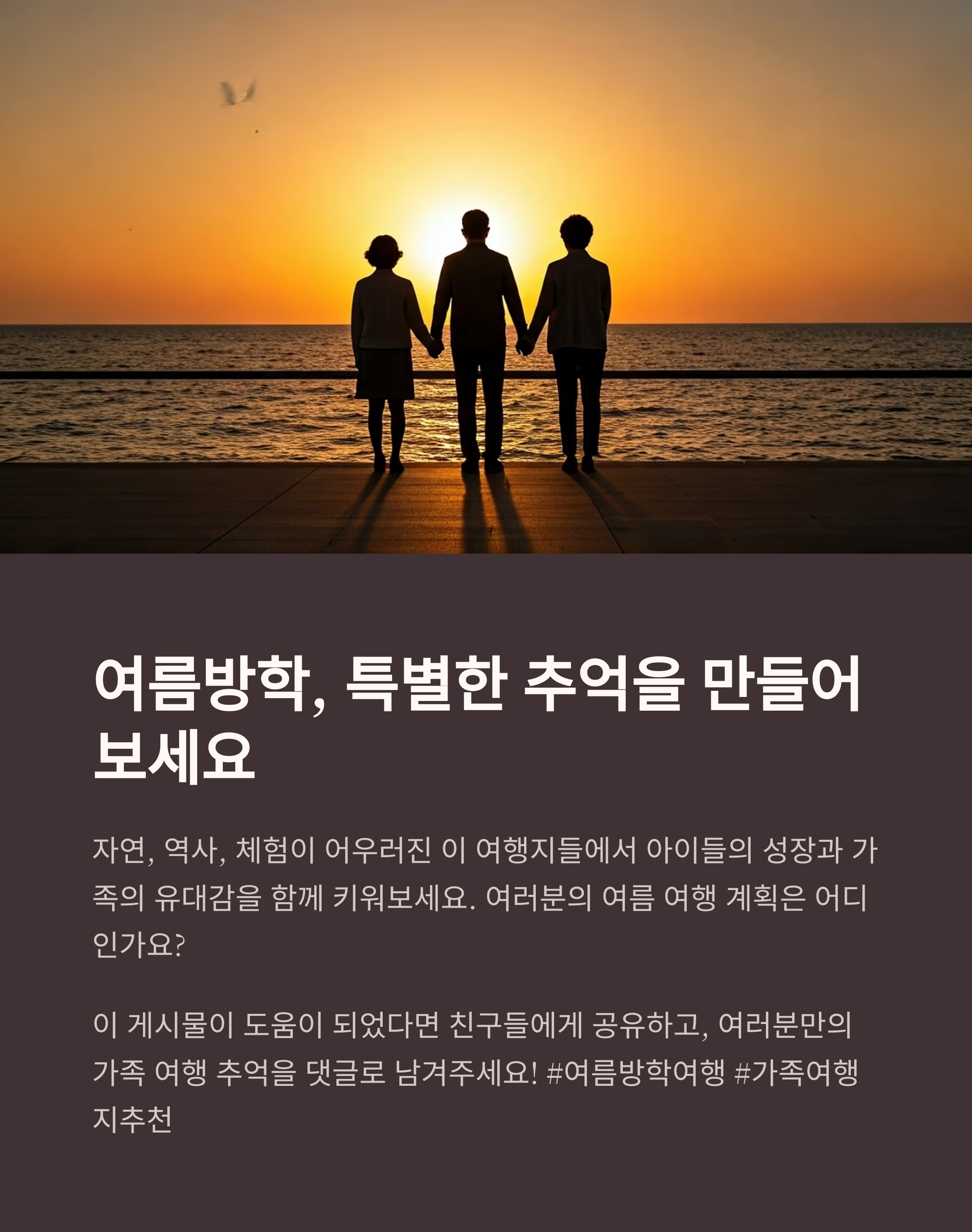 | 주말 1박2일 아이와 함께 떠나는 최고의 가족 여행지 추천 (3) | 2025.07.15 |