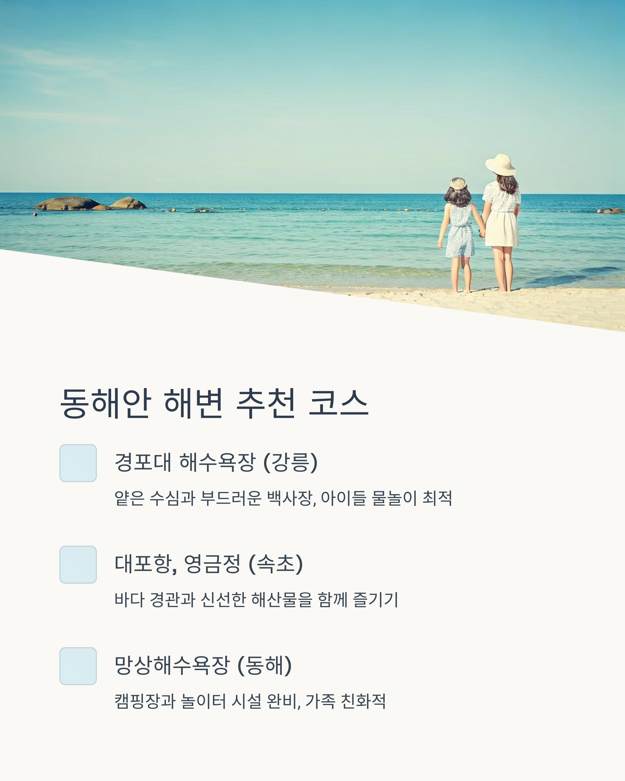 강원도는 여름철 가족 여행지로 늘 사랑받는 곳입니다. 탁 트인 자연과 시원한 계곡, 바다, 그리고 가족 모두가 즐길 수 있는 체험형 관광지까지 다양하게 준비되어 있습니다. 이번 글에서는 아이들과 함께하는 강원도 여름 가족 여행의 핵심 포인트를 중심으로, 동선, 추천지, 준비물까지 꼼꼼하게 정리해드립니다.