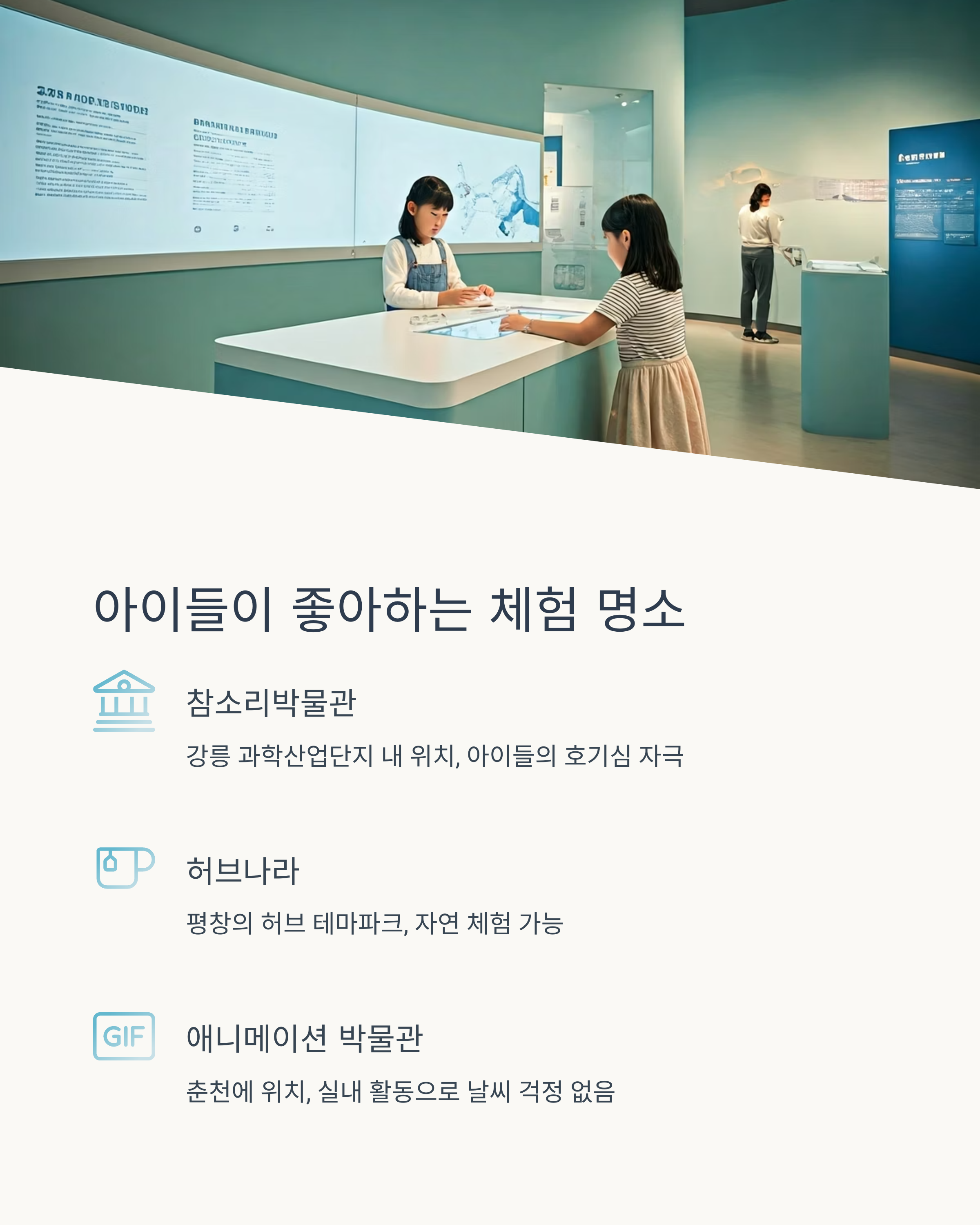 등은 아이들의 호기심을 자극하는 명소입니다. 날씨에 상관없이 실내외 모두 즐길 수 있어