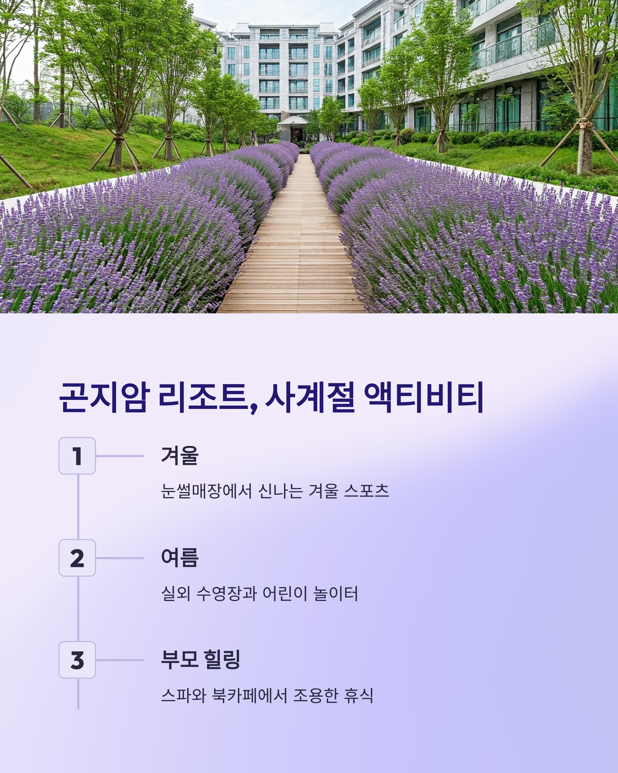 | 곤지암 | 중간 | 스파와 조용한 휴식 |