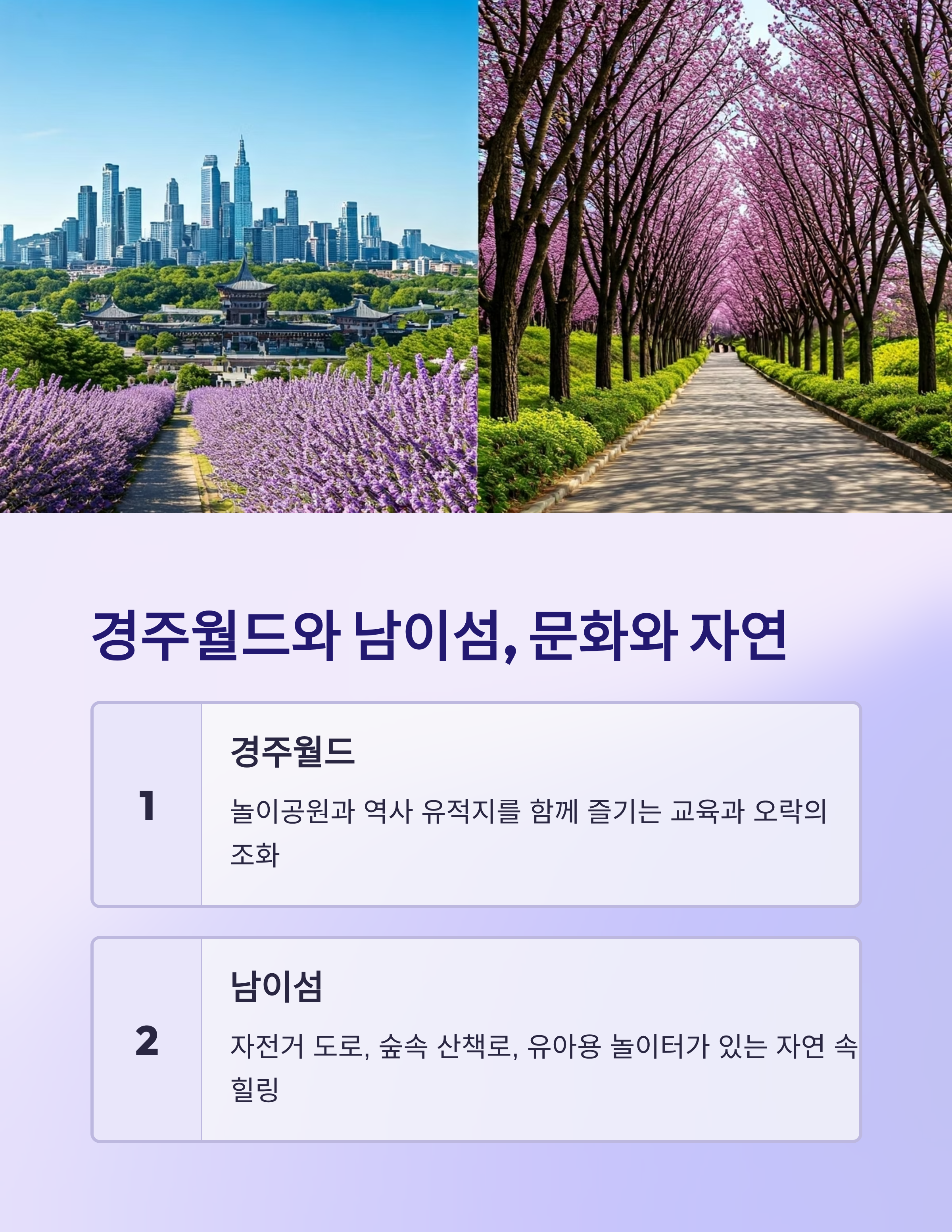 | 아이와 함께 떠나는 주말 1박2일 국내 여행지 추천 총정리 (6) | 2025.07.19 |